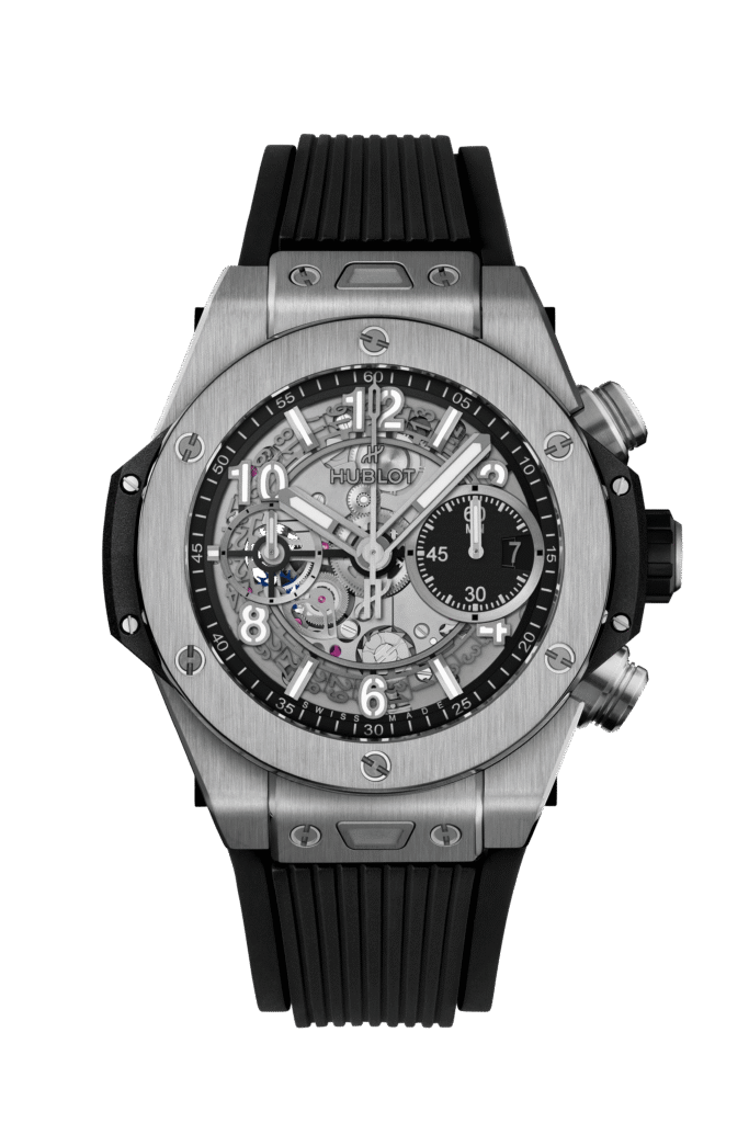 The Big Bang Unico represents Hublot’s technical evolution. It features the brand’s in-house UNICO chronograph movement, visible through openworked dials and sapphire casebacks. These watches lean heavily into skeletonisation, industrial design, and mechanical theatre.